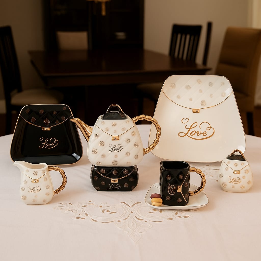 طقم شاي 25 قطعة اسود*ابيض - SC22-6-H1