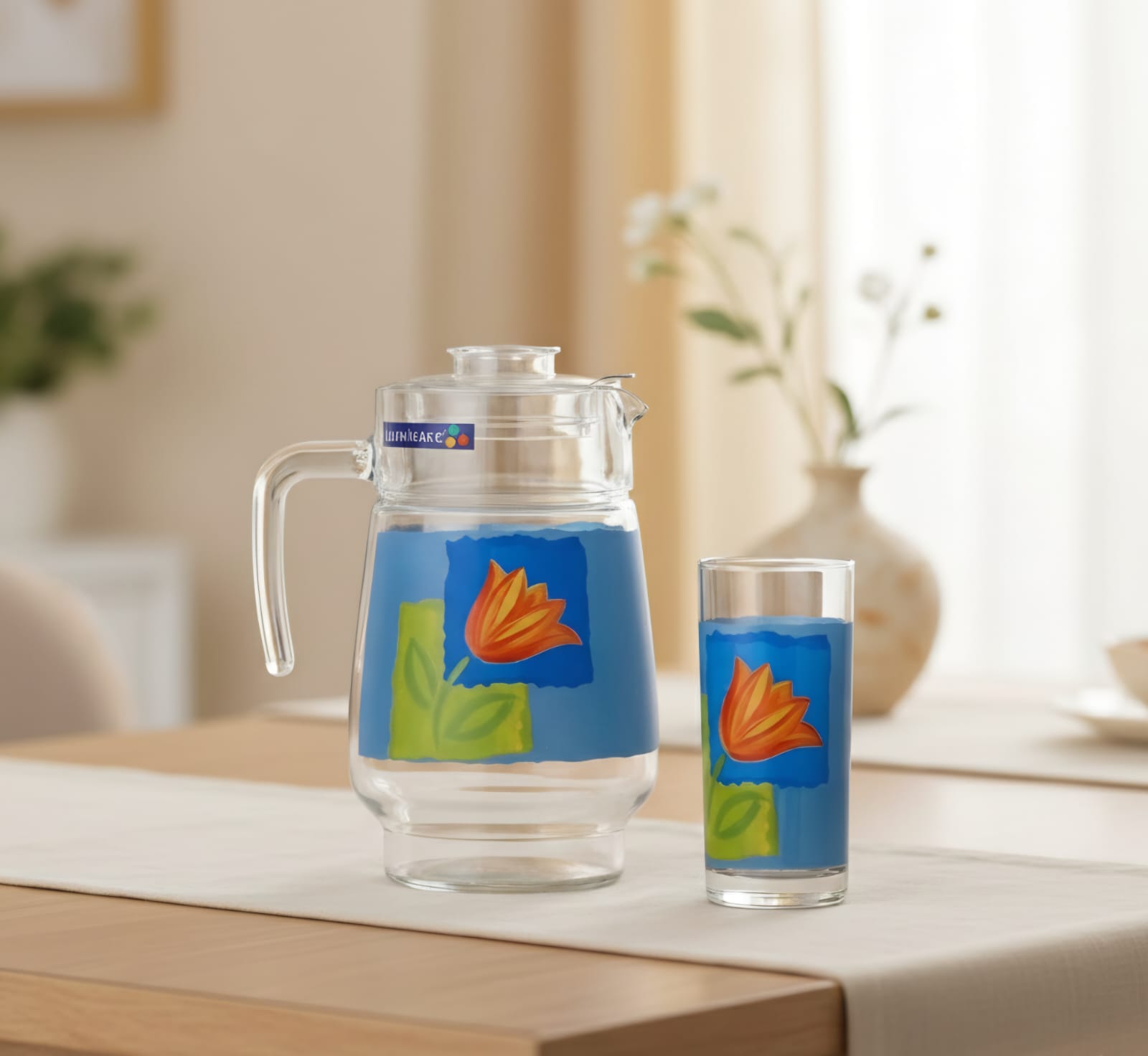طقم شربات 7قطع لومينارك ميليس ازور “ 6 شوب + دورق بالغطاء ” |