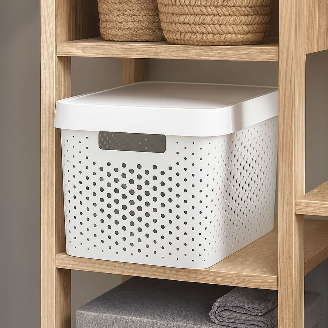 باسكت كيرفر تخزين وتنظيم اغراض بلاستك مستطيل ابيض مفرغ مقاس صغير صنع في الاتحاد الاوروبي