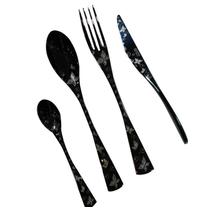مكون من : 12 معلقه طعام 12 معلقه شاي 12 معلقه حلويات 12 شوكه طعام 12 شوكه حلويات 12 سكينه طقم توزيع 9 قطع 2 معلقه سكر شوكه للحلو ماسك شيالة جاتو